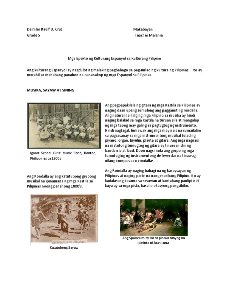 Epekto Ng Kulturang Espanyol Sa Mga Pilipino