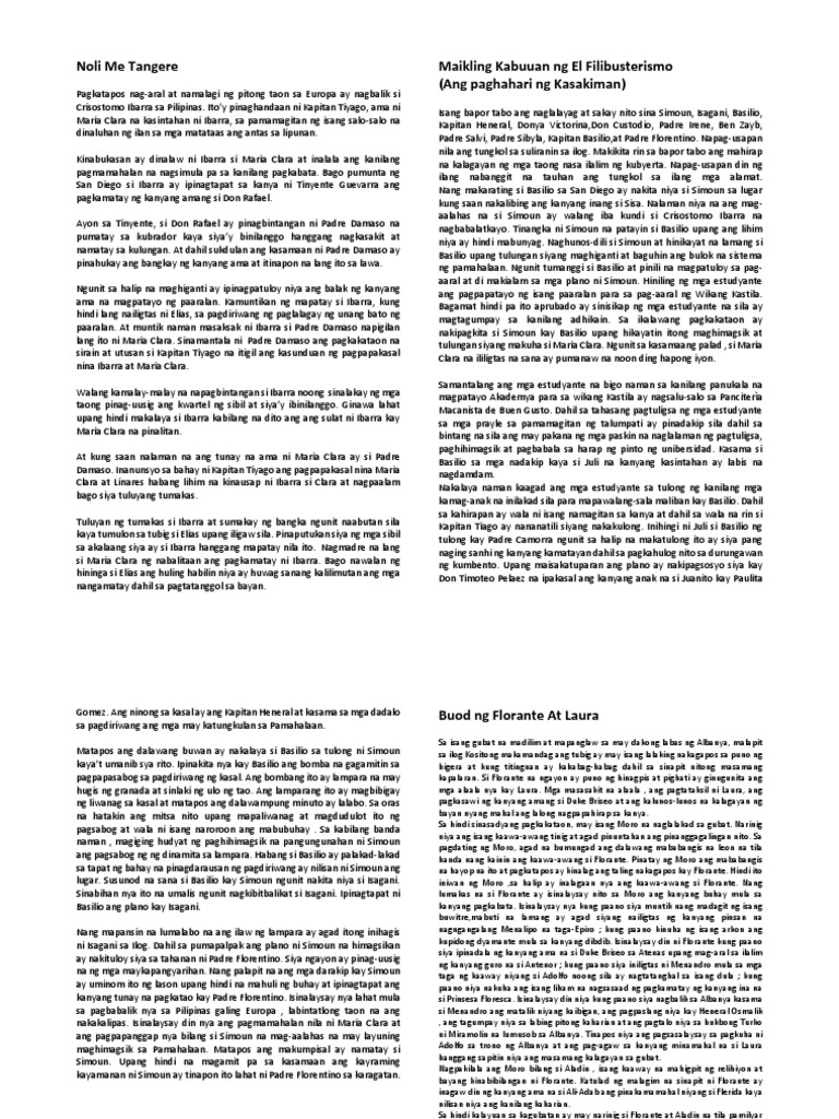 Lumaki si Maria Clara sa kumbento5 Ang katabi ng hotel na tinutuluyan ni Crisostomo ay ilog6. Ilang taon nag-aral si Crisostomo Ibarra sa Europa. Sa kanyang pag-uwi sa Pilipinas hinandugan siya ng isang piging ni Kapitan Tiyago.