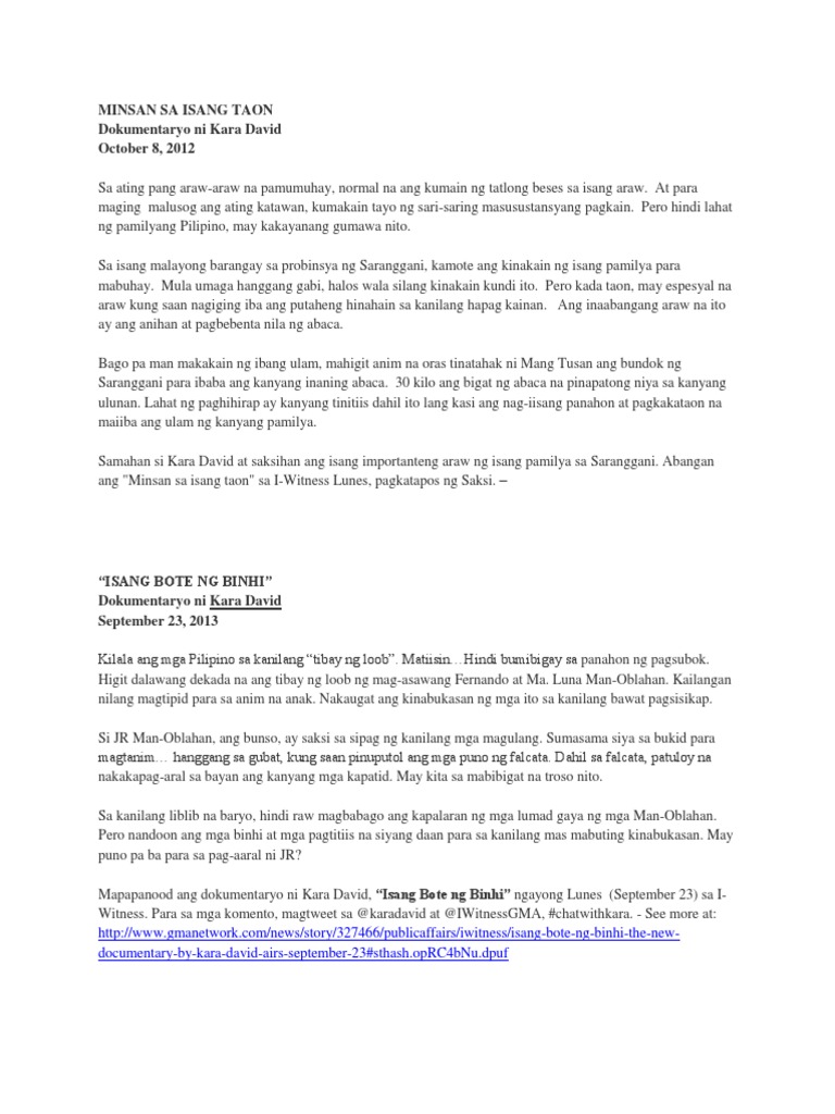 Minsan Sa Isang Taon Docx U201cminsan Sa Isang Taon U201d Documentary Of Kara David Laut Sittie Almahar H A Tomaroy Jeric Minsan Sa Isang Taon Once A Year Course Hero