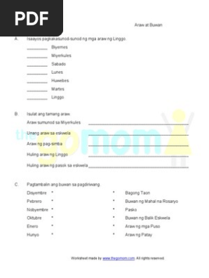 Maestra Juana posted a video to playlist MATHEMATICS. MGA BUWAN SA ISANG LINGGO 2. For the months of the year worksheets 2-page and 1-page versions are provided.